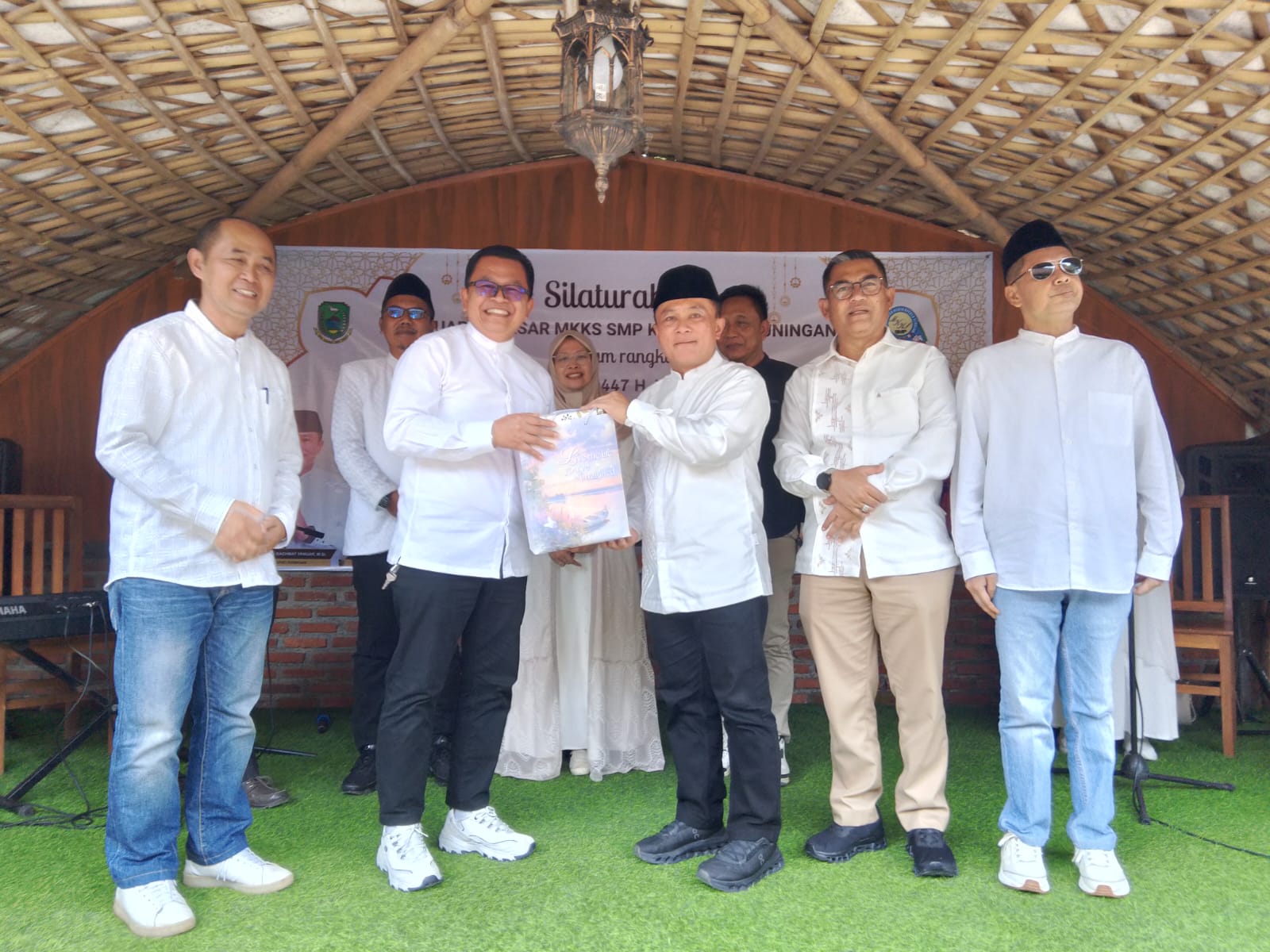 LPPLKUNINGAN-Musyawarah Kerja Kepala Sekolah (MKKS) SMP Se- Kabupaten Kuningan, menggelar silaturahmi idul fitri, walimatussafar haji dan ramah tamah alih tugas kepala bidang SMP, di Saung Karuhun, Minggu (5/4/2026).